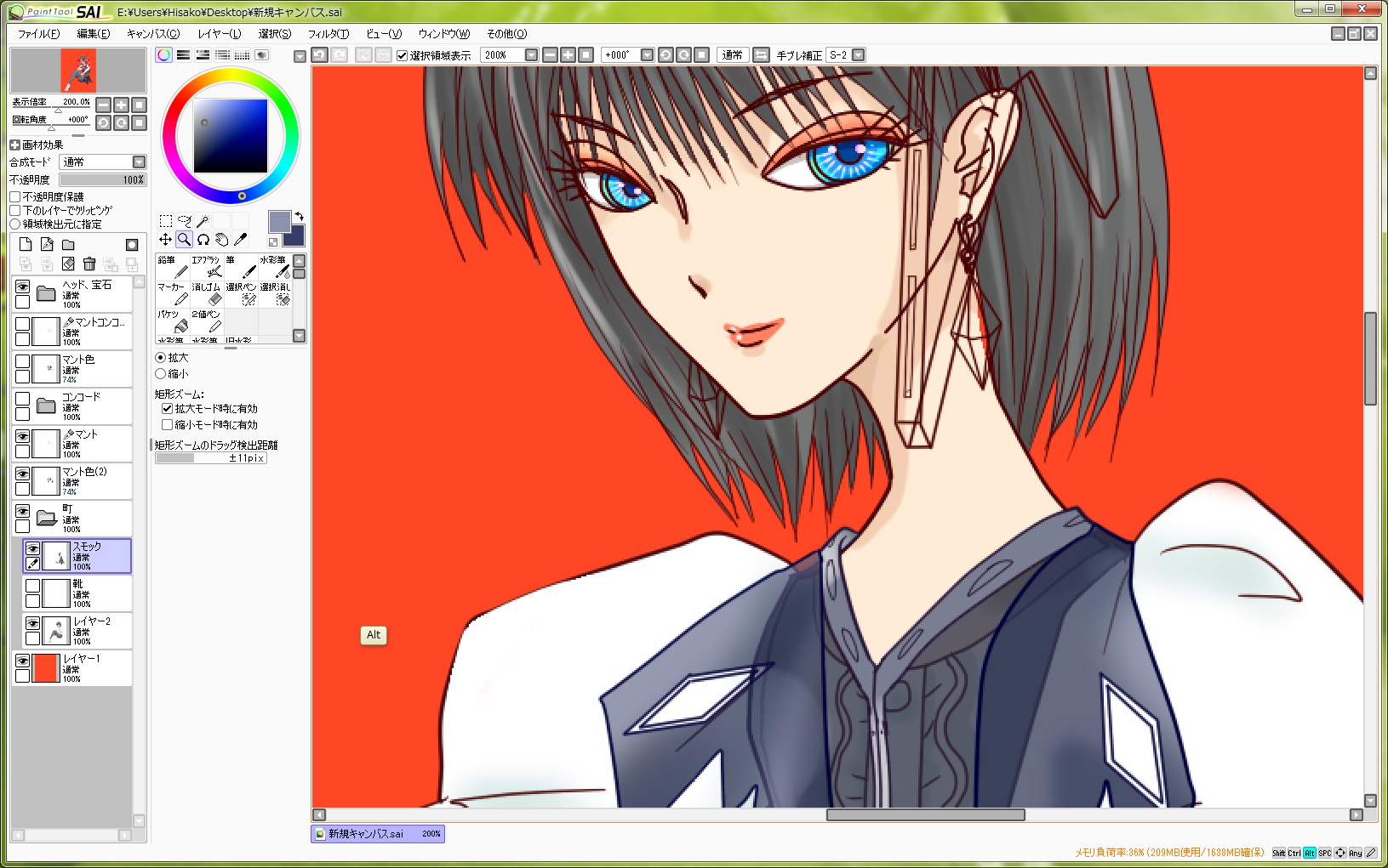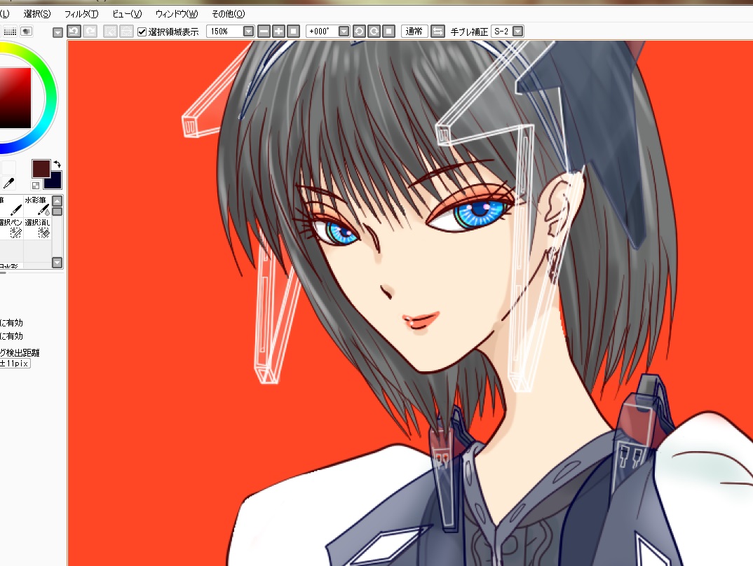 頭と肩のメカ描いた。