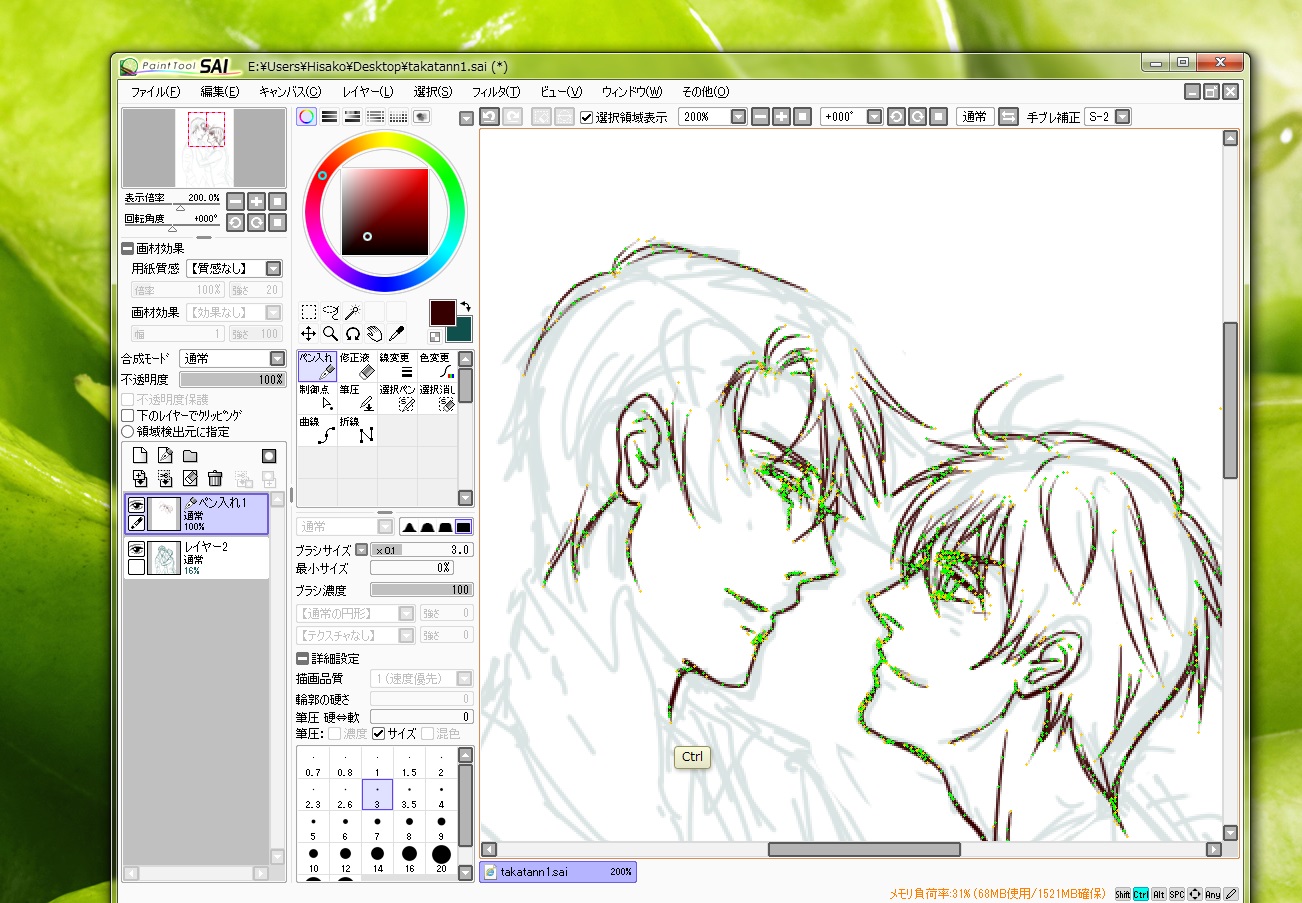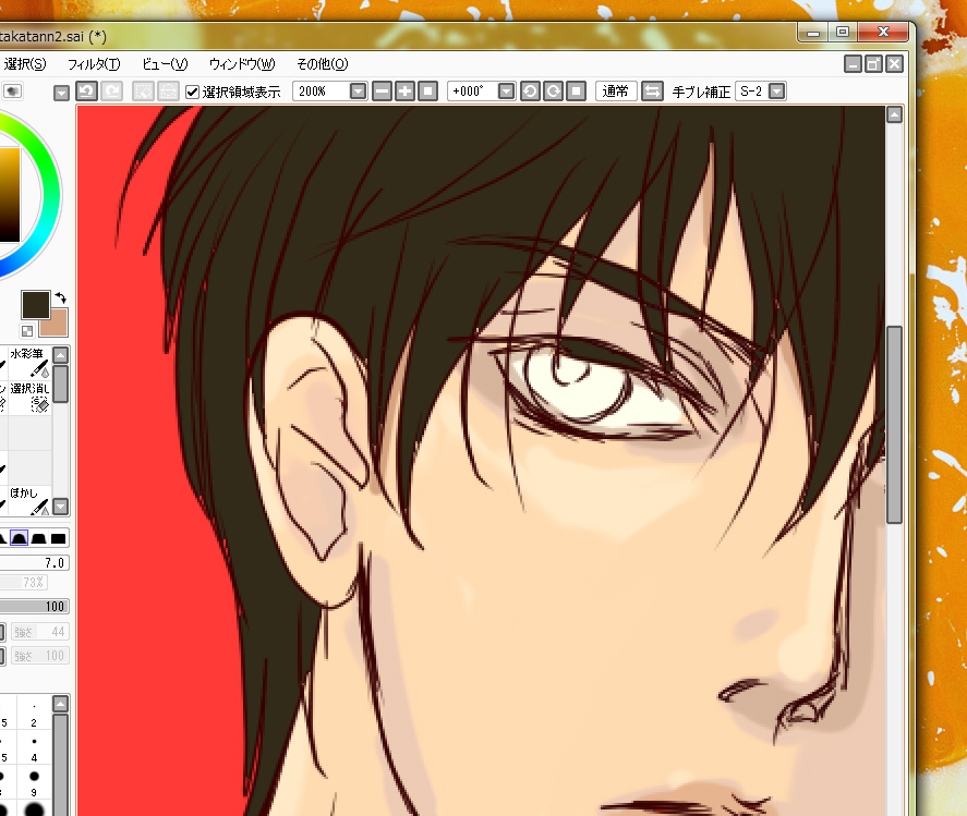 線色変更は、お絵かきソフトSAIだとタッチ一発でできる。